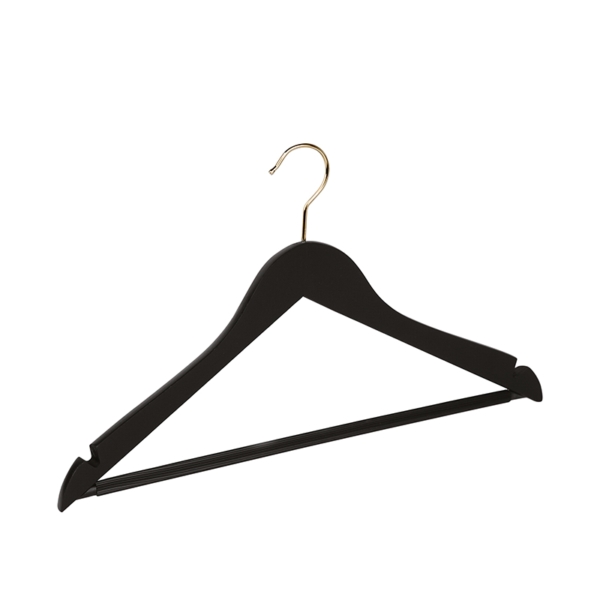 Gruccia in legno di faggio nero, gancio dorato - 50pz | Amonn
